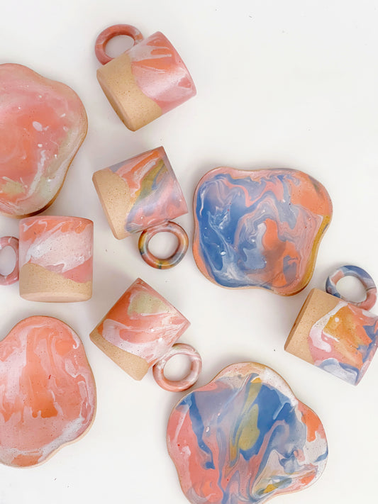 Cosmic! Marble 10oz Hand-painted and Handmade ceramics mug and plate