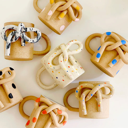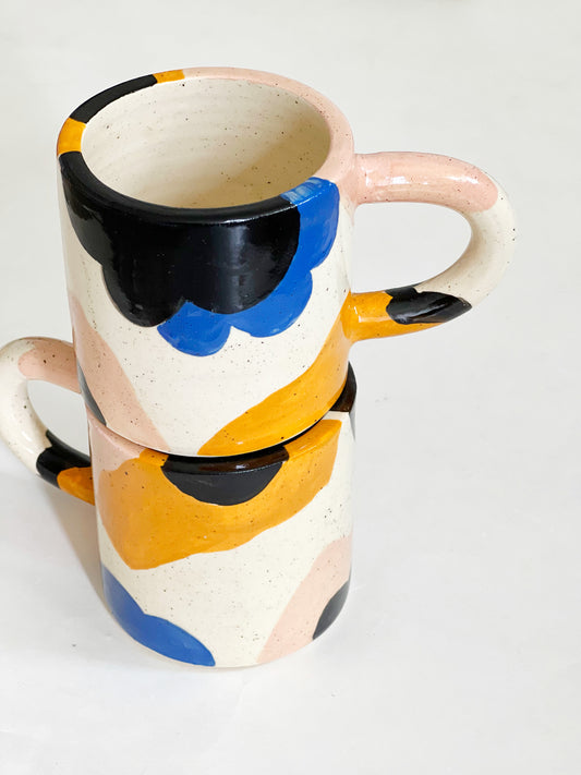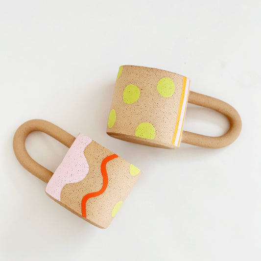 Mix Pattern Long Handle Speckles Handmade and Hand-painted Ceramics Mug