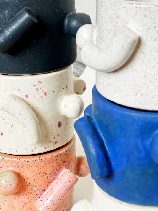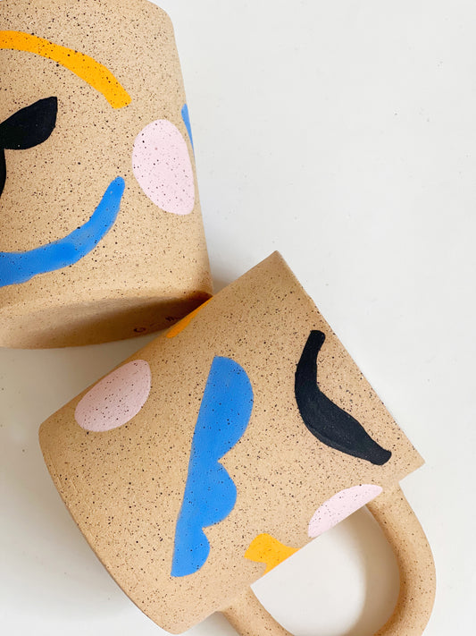 Large Eyes and Dots Speckles Handmade and Hand-painted Ceramics Mug