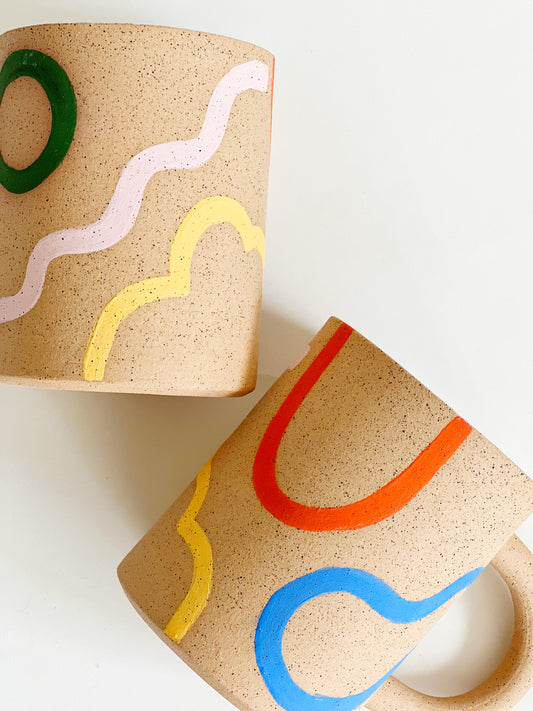 Wide Mix Pattern Handmade and Hand-painted Ceramics Mug