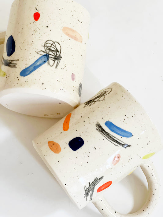 Large Sprinkles Dots and Sketch Handmade and Hand-painted Ceramics Mug