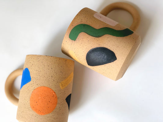 Large Dots over shapes Handmade Ceramic Mug