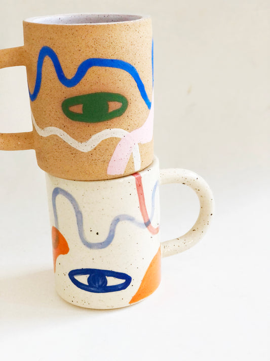Large Eyes and Dots Speckles Handmade and Hand-painted Ceramics Mug