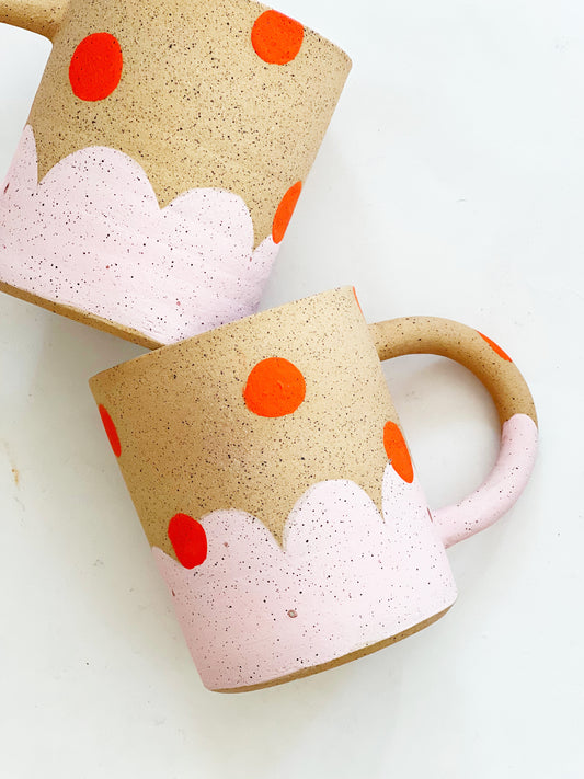 Large Dots over Flowers Handmade Ceramic Mug