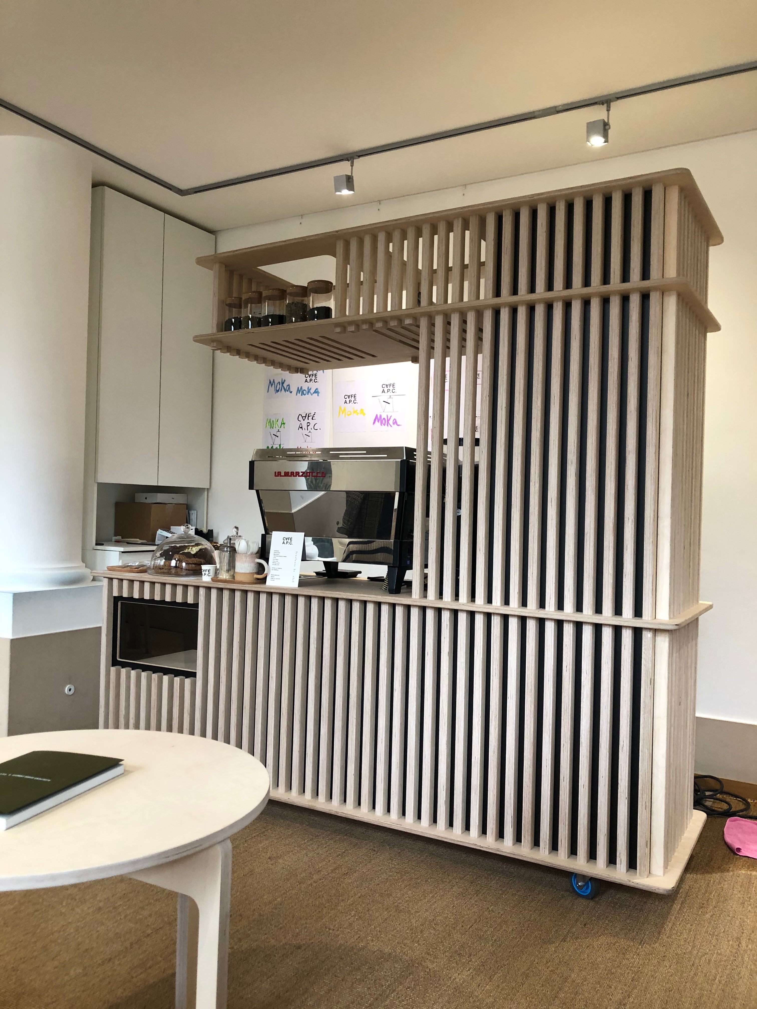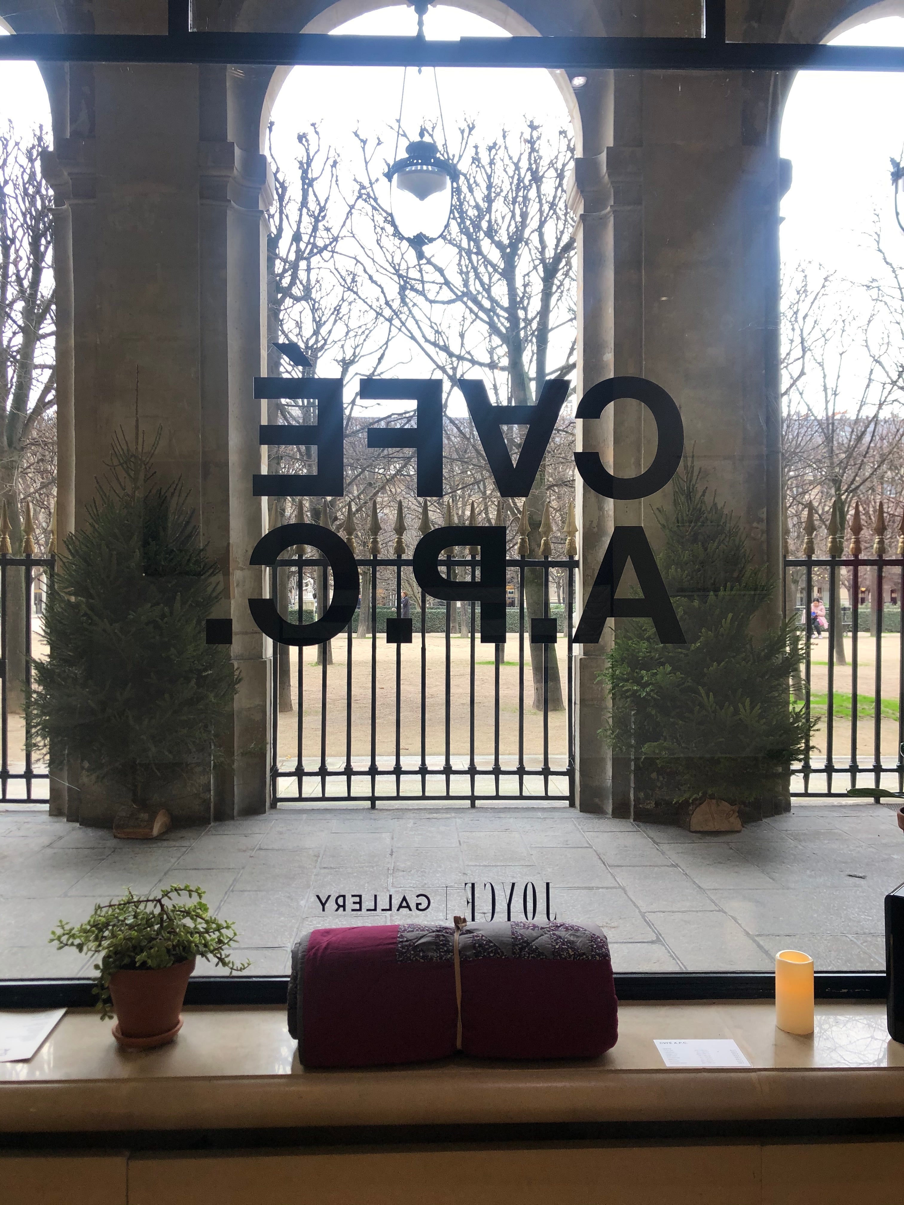 A coffee mug collaboration with A.P.C. at their cafe pop-up that took place in the beautiful Palais Royal, in front of the garden.