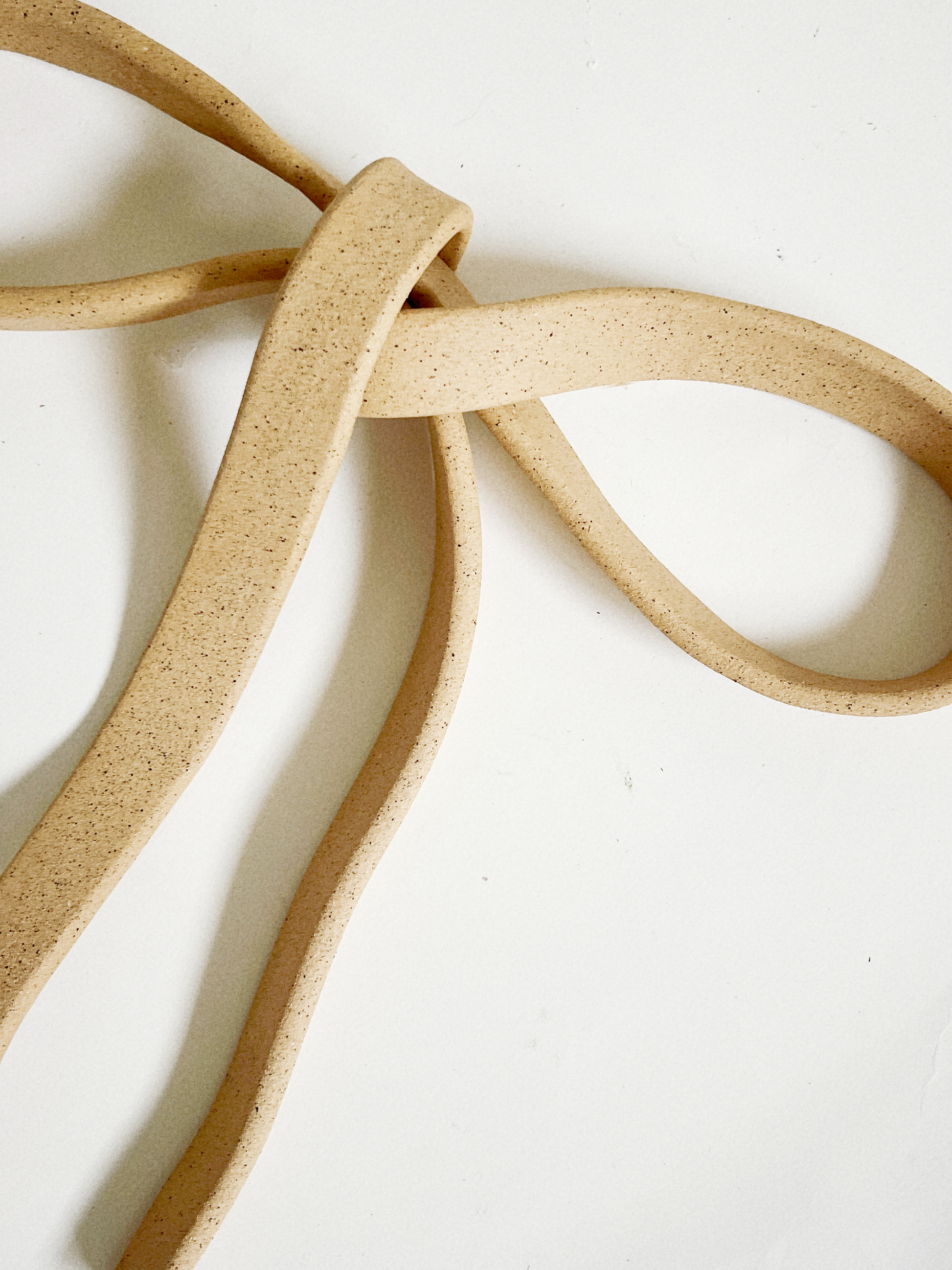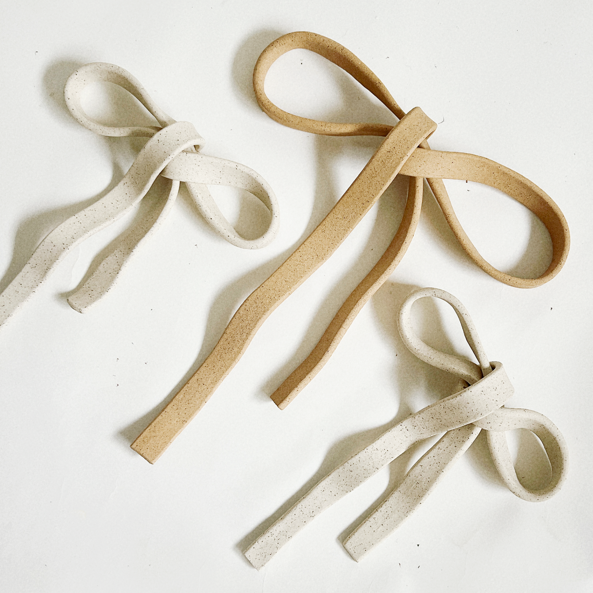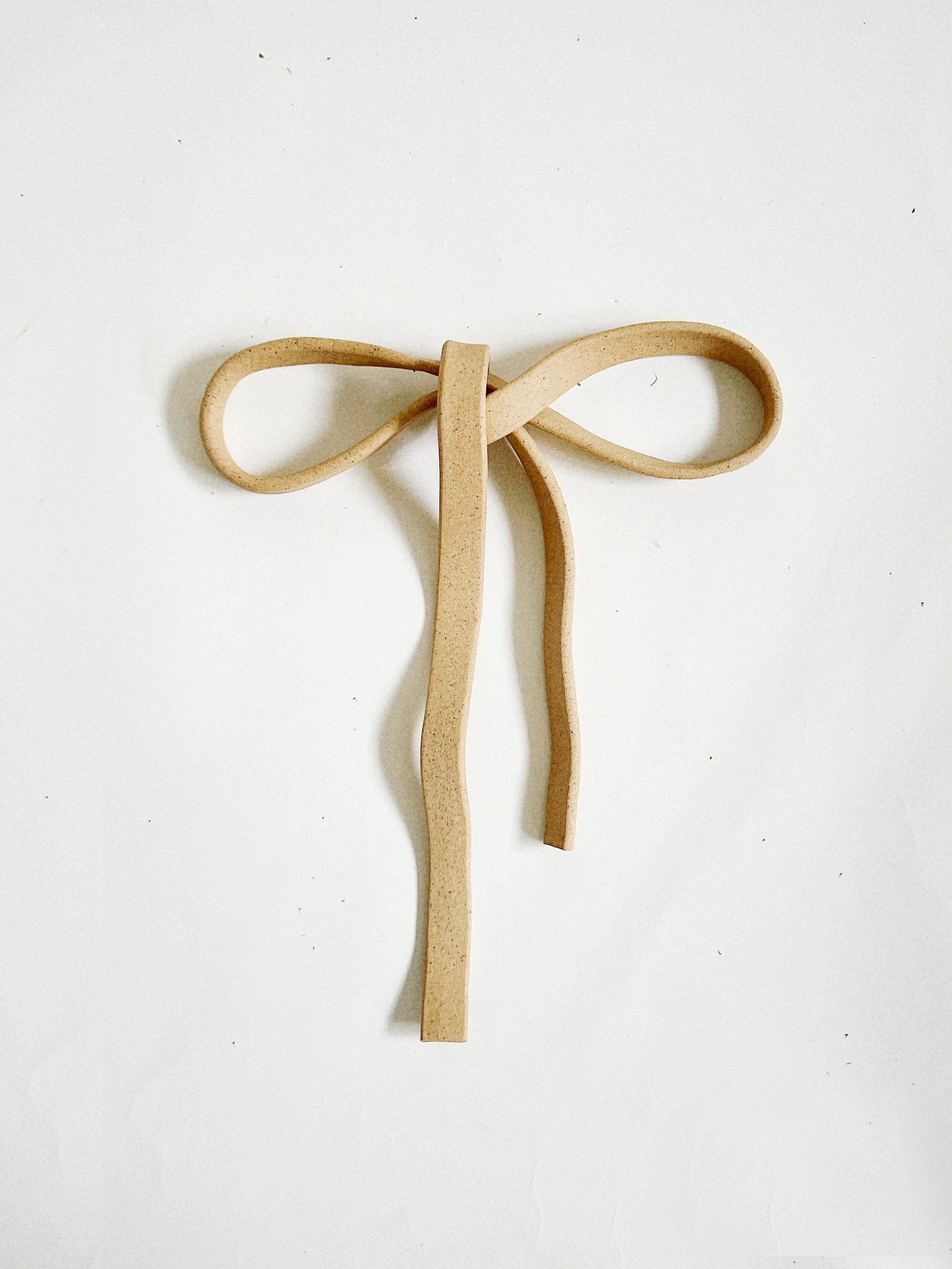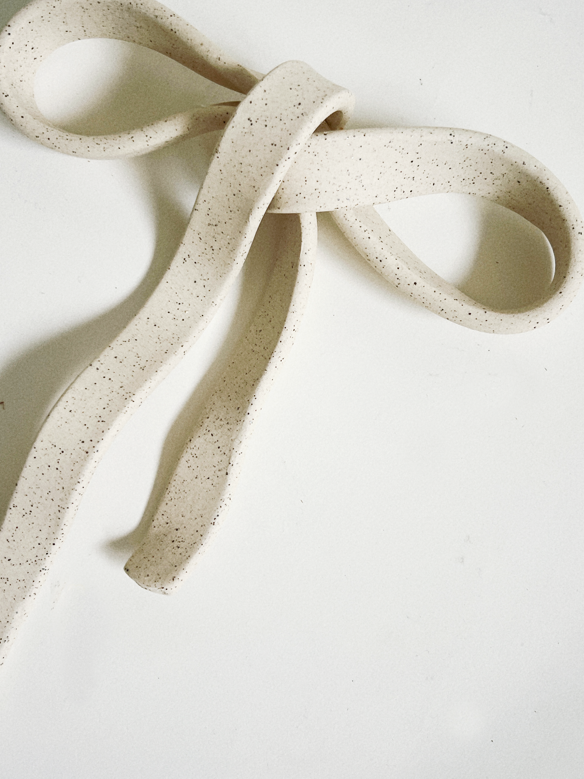 A ribbon made solid, a gesture held in clay. The Soft Bow is hand-formed with gentle curves and folds, capturing the ease of fabric in a lasting material. Both playful and quiet, it ties together memory, pause, and ornament.