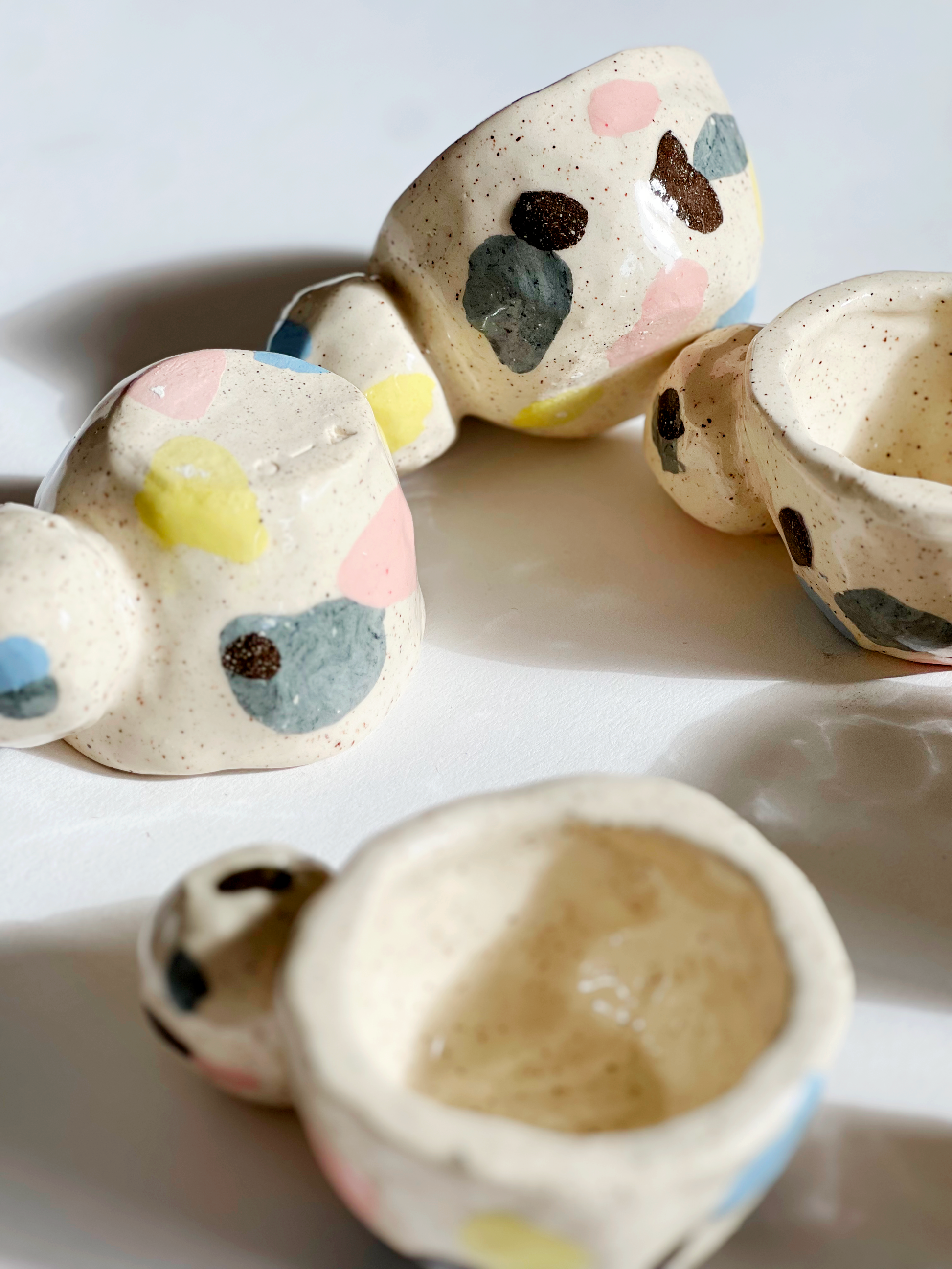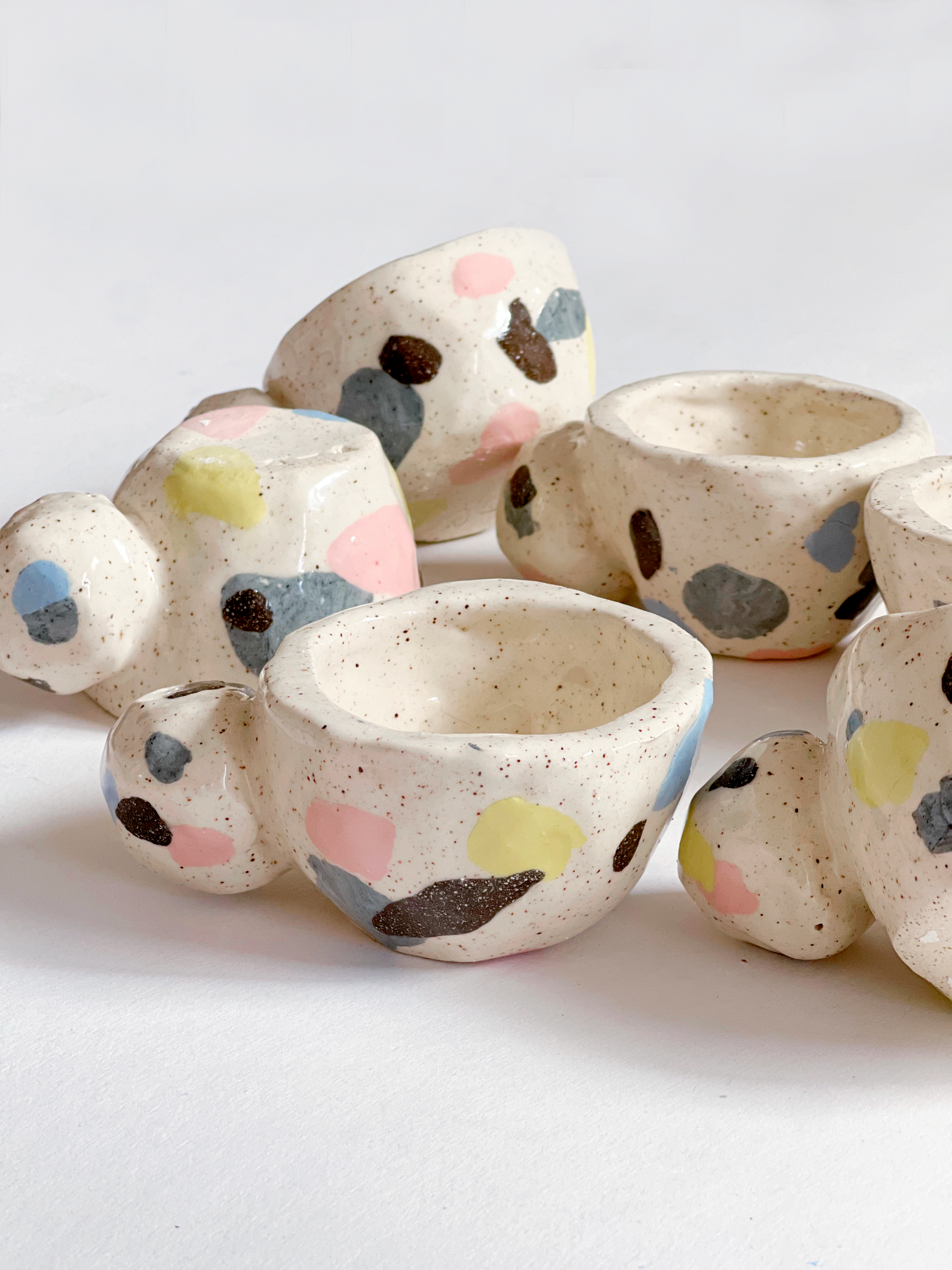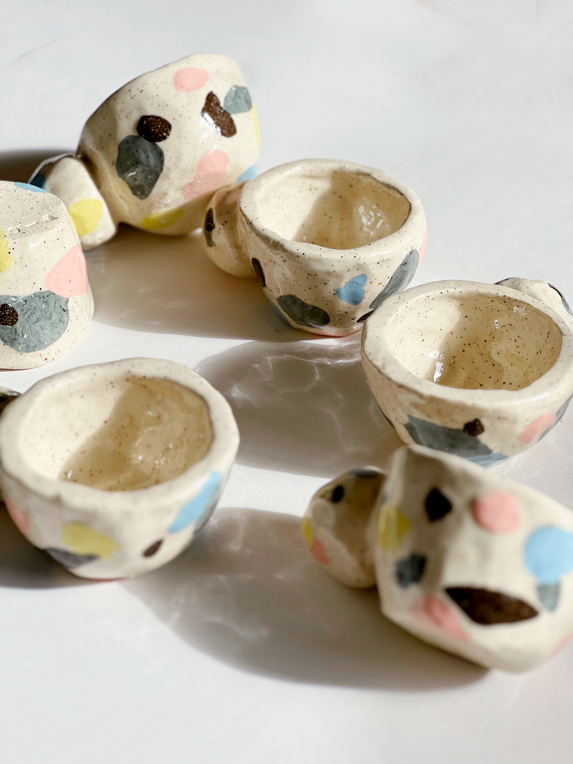 Each item is handmade and one-of-a-kind, varying slightly in size, shape, and glaze.