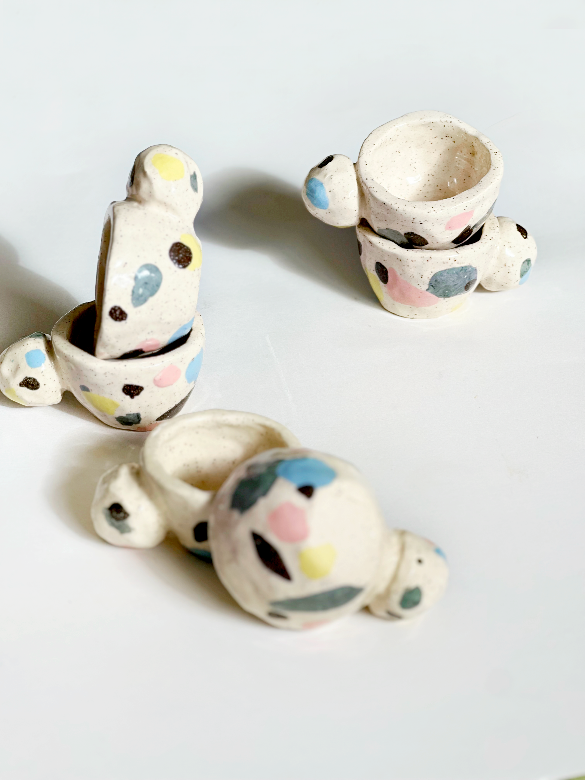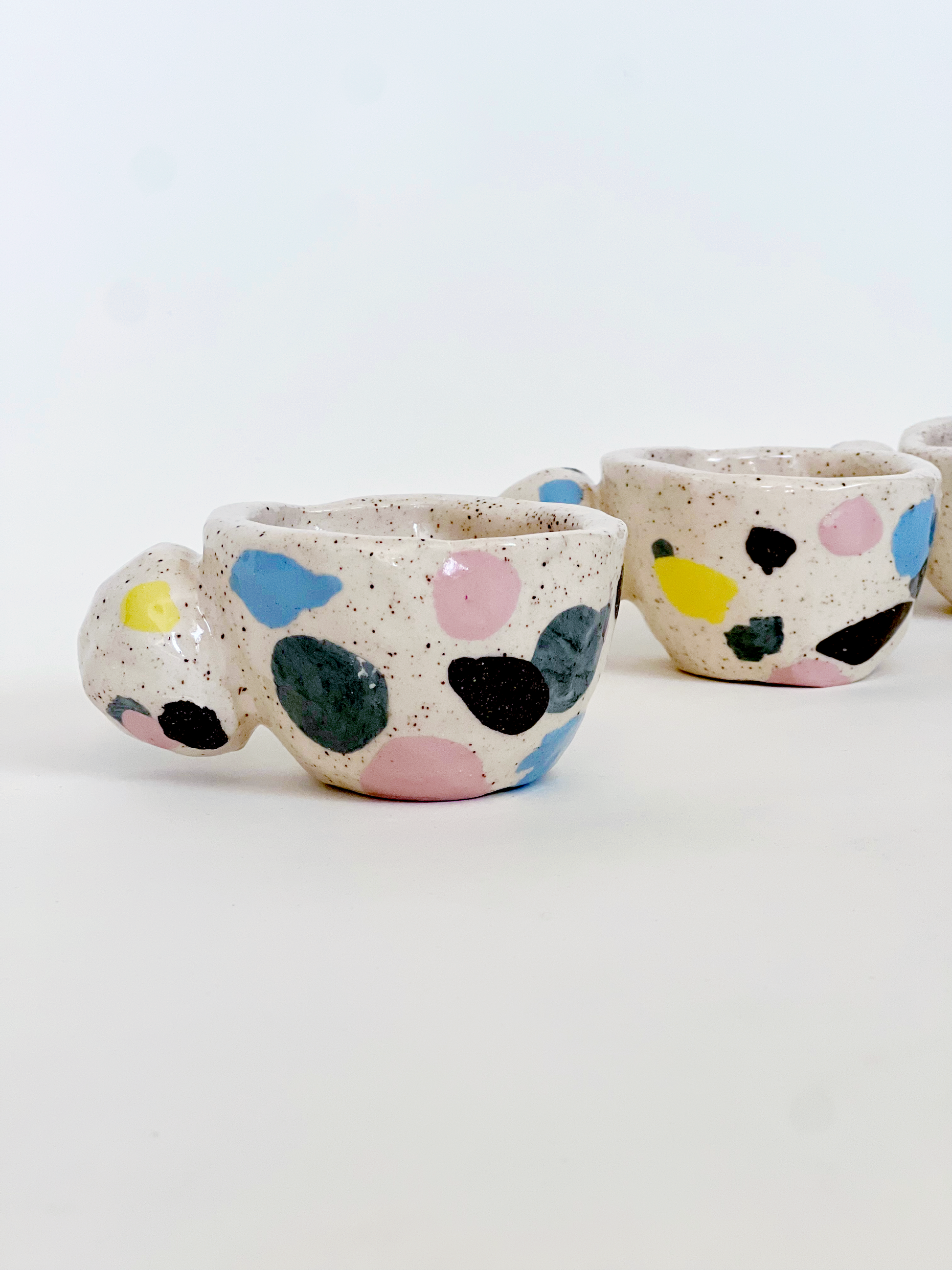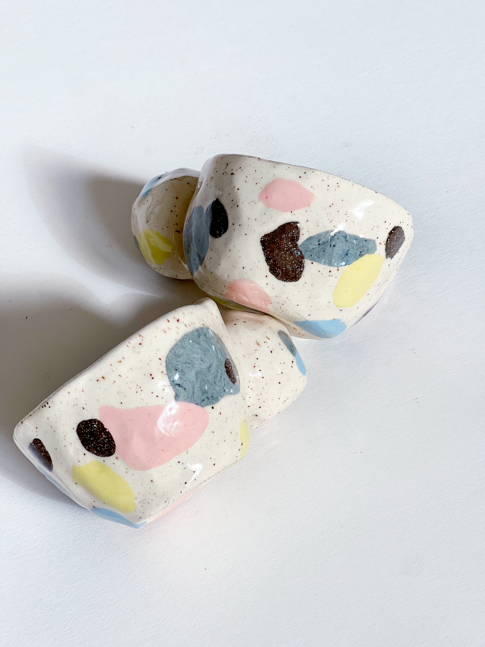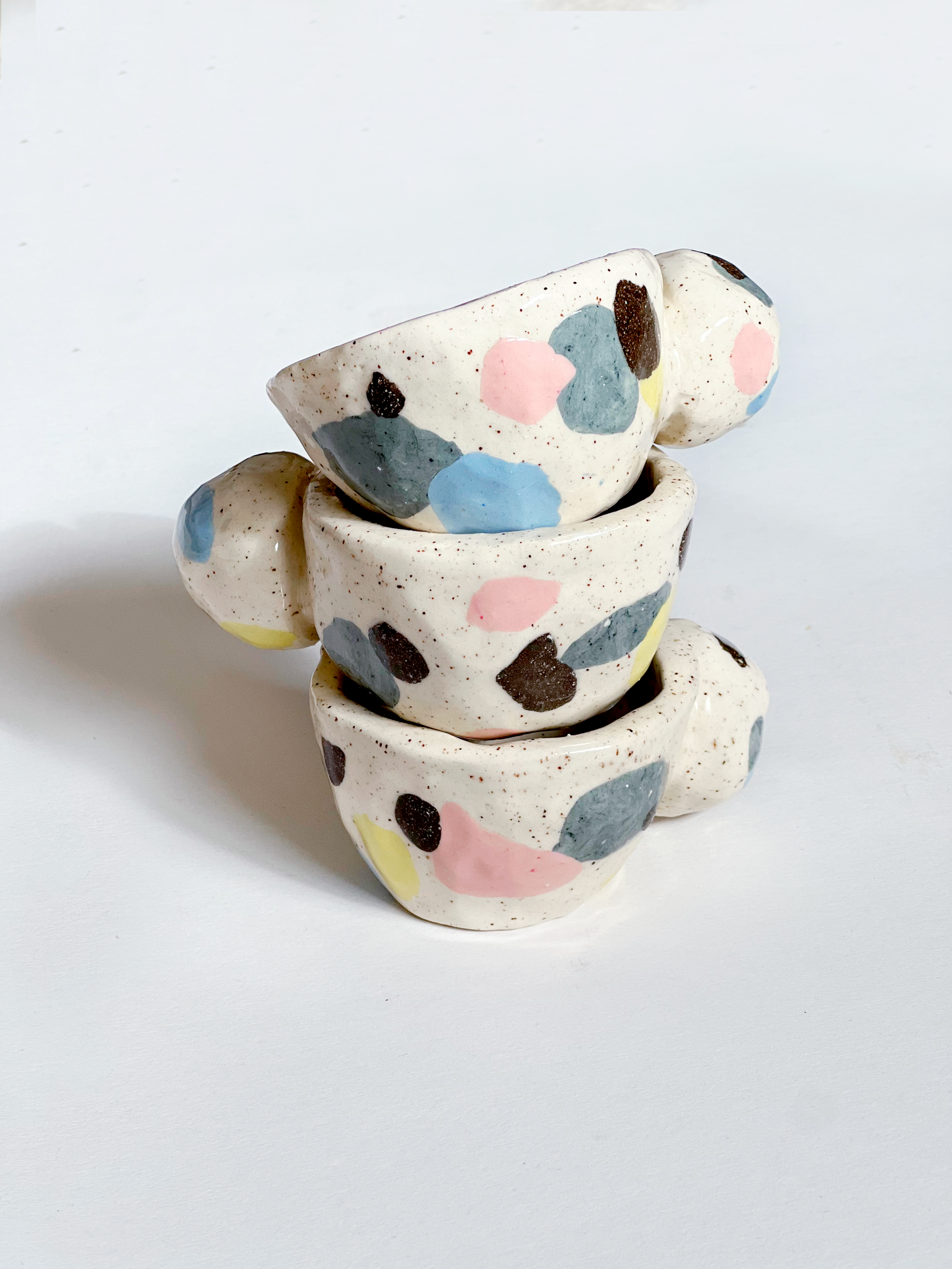 Handbuilt like a delicate collage, the Wandering Dream cups feature soft shapes and quiet layers that invite calm reflection. Their comforting weight grounds your hands, creating a tactile connection that enhances each moment. These cups blend refined craftsmanship with serene beauty for a truly sophisticated experience.