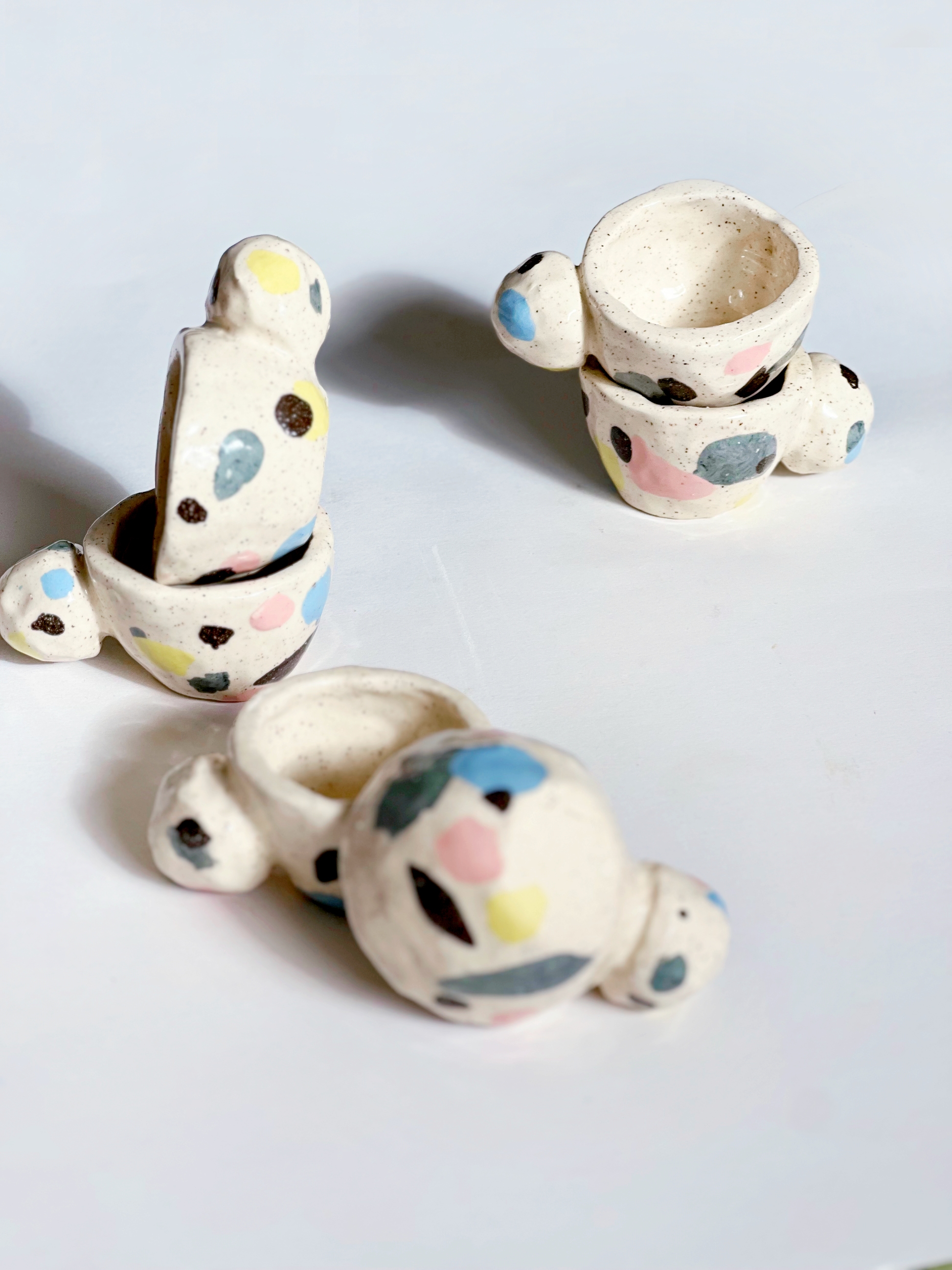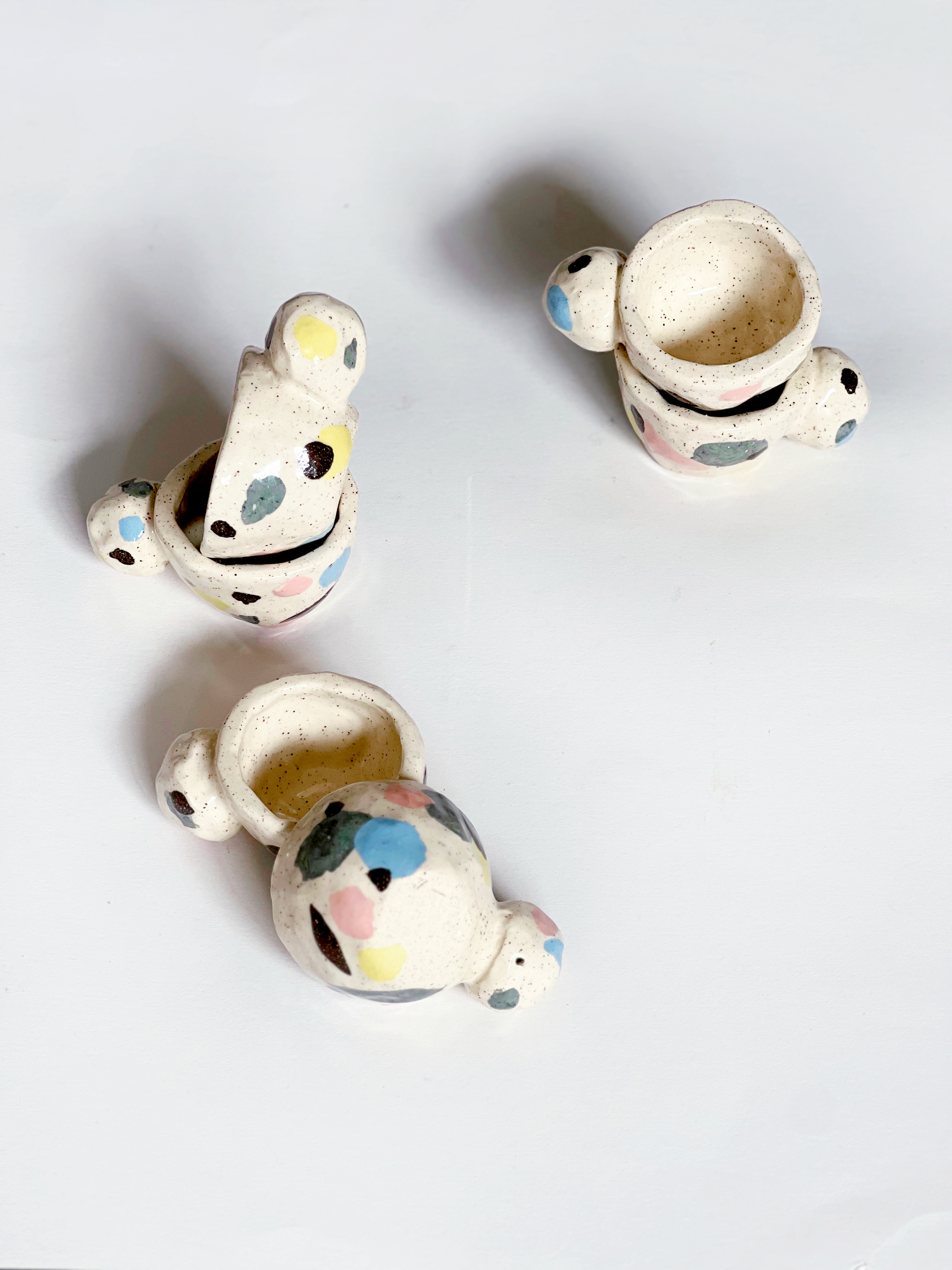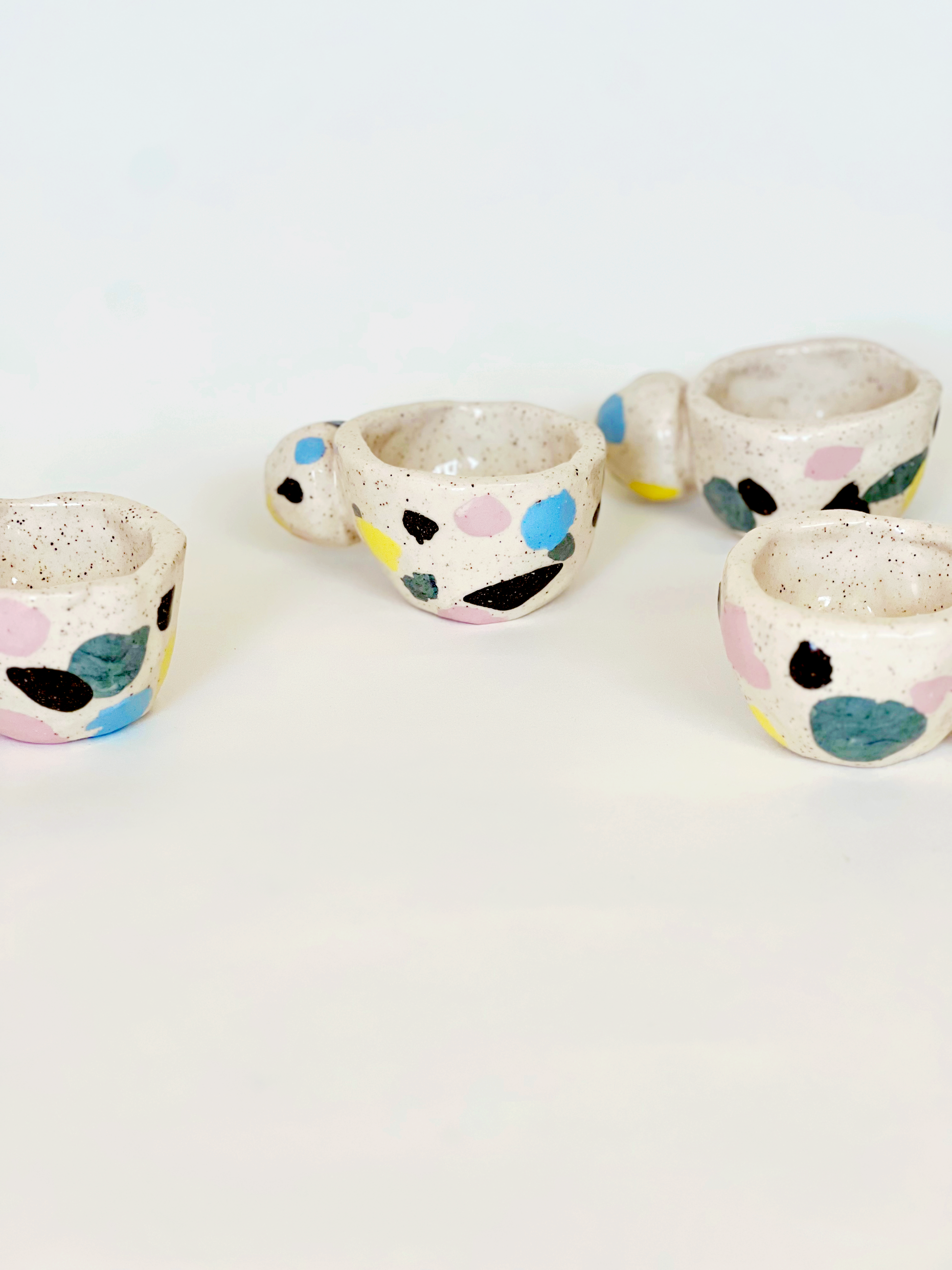 Handmade and Hand painted Ceramics Mug with clear glaze applied.Size: around 2.5" (h)