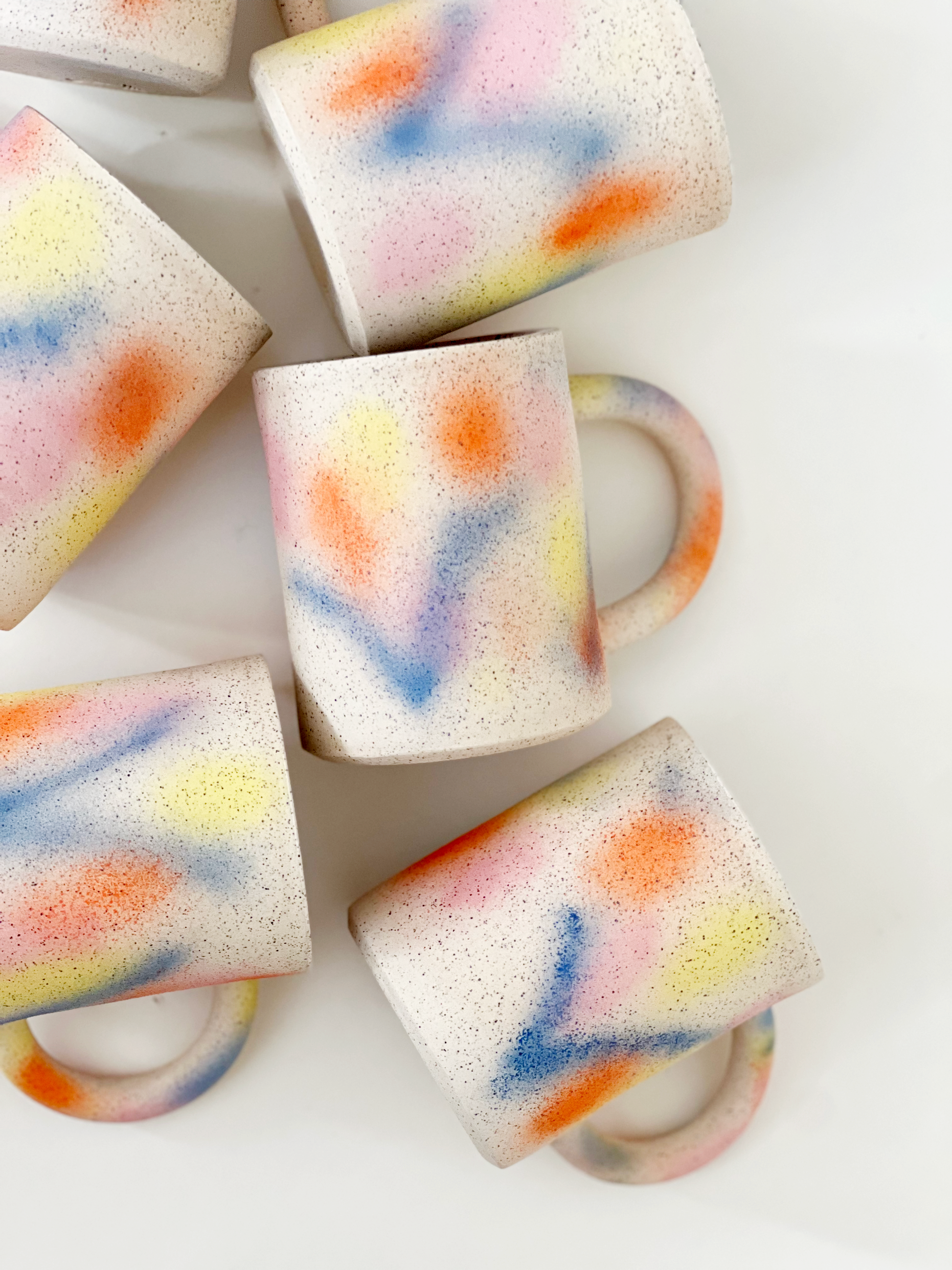 Hand Painted Design Mug with white speckles glaze applied.