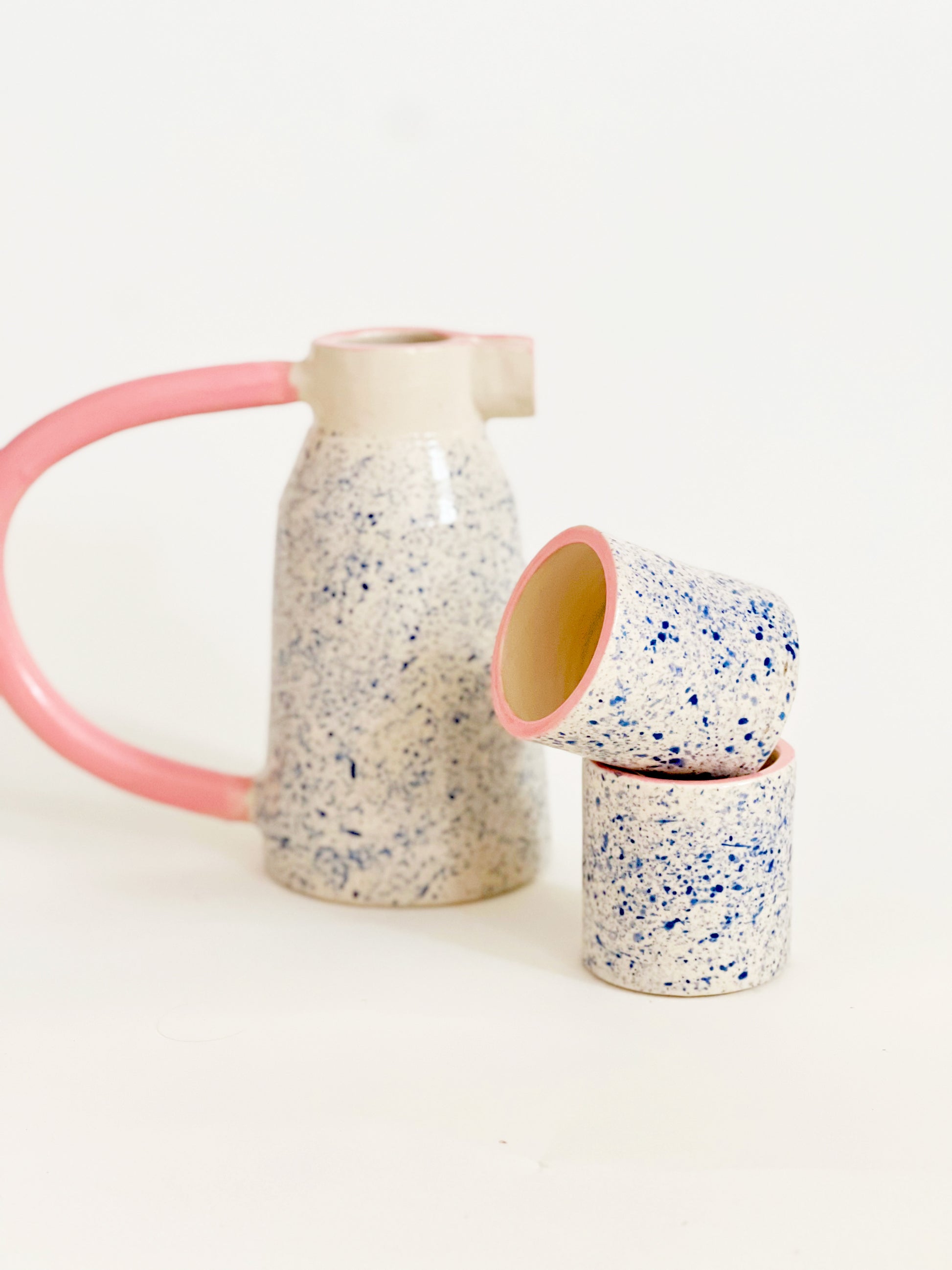 Add some whimsy to your morning ritual or party with our Speckled Sky Pitcher and Cups set. The speckled design will transport you to a beautiful sky while you enjoy your favorite drinks. Perfect for adding a touch of fun to any occasion!